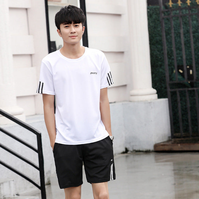 mens casual streetwear: 2 pcs Tops+ Shorts Suit
